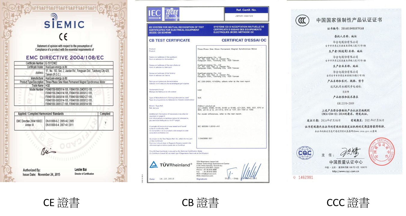 華全電設計生產的馬達可導入產品包括FCU(fan coil unit)風機盤管,FFU(fan filter unit)無塵式風機組,中央空調,工業風扇、通風設備、養殖水車等高耗能電機設備。華全電已有多樣成品通過CE,CB,CCC認證,廣泛應用於各類場所。